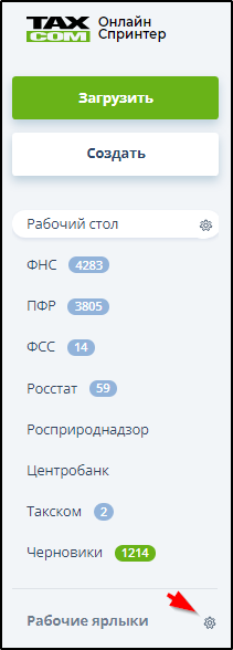 Нажмите кнопку справа от надписи "Рабочие ярлыки".