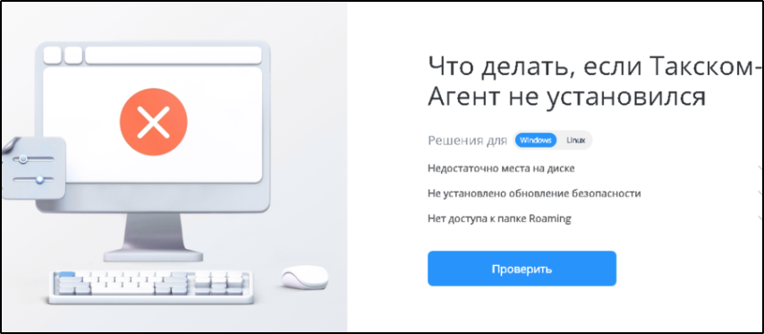 Необходимо исправить причины, препятствующие установке утилиты «Такском-Агент», при необходимости, обратившись к системному администратору.