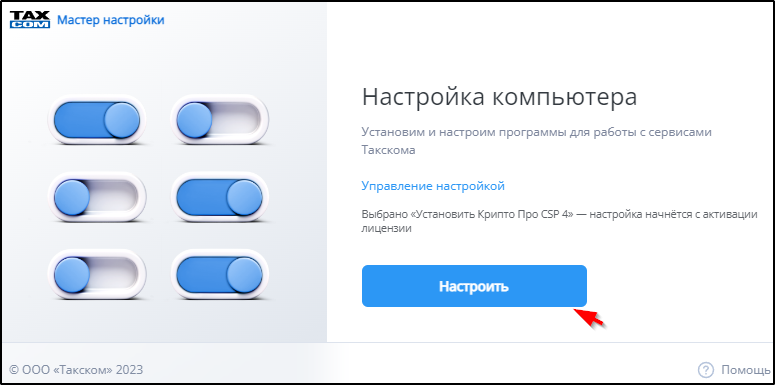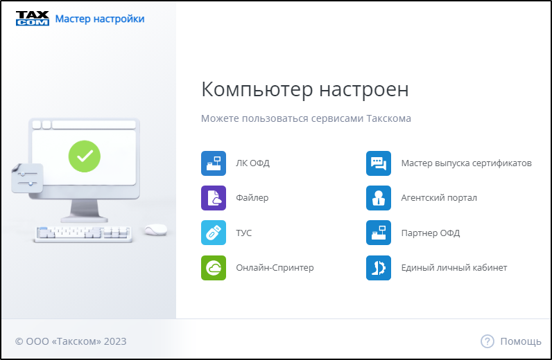 При невозможности корректно установить «Такском-Агент», откроется страница «Мастер настройки» с указанием возможных причин невозможности установки и кнопками для перехода к рекомендуемым действиям.