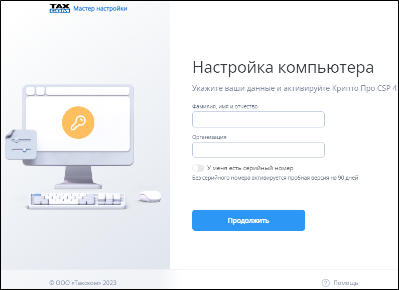 Для настройки рабочего места и использования ключей ЭП необходимо скачать и установить утилиту «Такском-Агент».