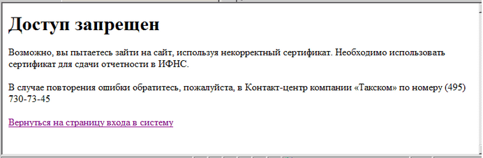 Для возобновления работы нужно вернуться на начальную станицу https://online.taxcom.ru, для этого можно воспользоваться ссылкой "Вернуться на страницу входа в систему".