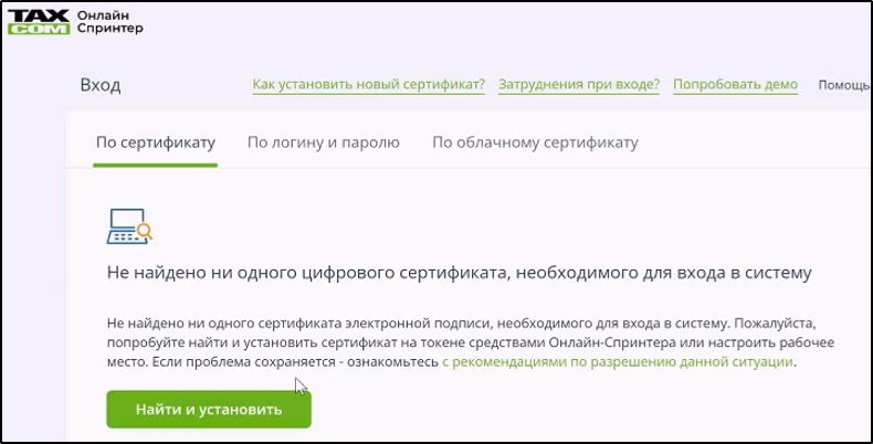 При отсутствии установленных действительных сертификатов ключа ЭП, пригодных для входа, отображается сообщение: