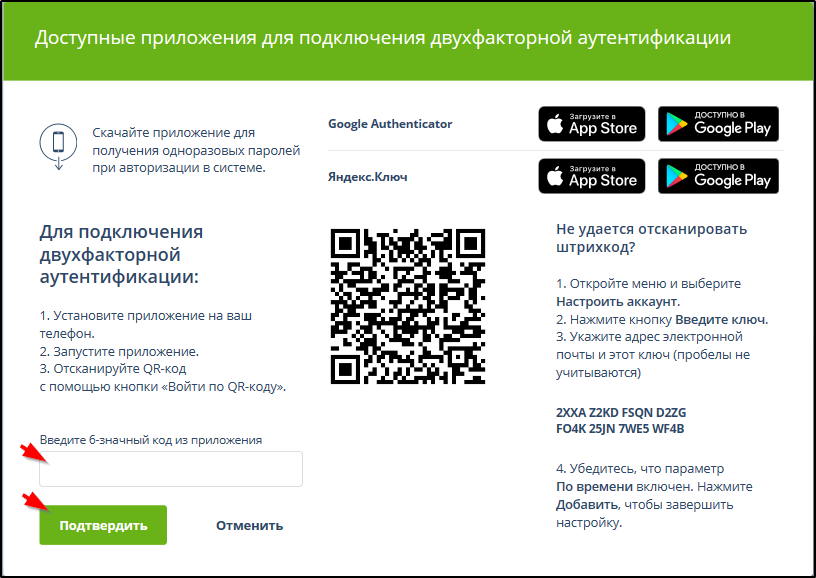 Установить на смартфоне приложение "Google Authenticator" или "Яндекс Ключ".