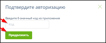 Ввести 6-значный код из мобильного приложения в окне портала "Онлайн-Спринтер" над кнопкой Продолжить и нажать кнопку Продолжить . Пример: