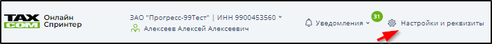Данные настройки необходимы для корректного формирования документов и вводятся после перехода по ссылке "Настройки и реквизиты" в верхней части окна. Пример: