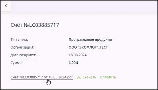 Для оплаты счёта можно нажать кнопку "Оплатить".