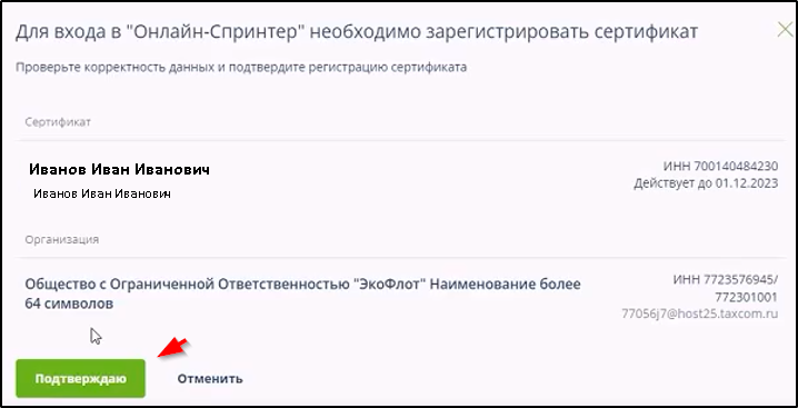 Если сотрудник по какой-либо причине не зарегистрировал личный сертификат ключа ЭП при первом входе в Онлайн-Спринтер, тогда для регистрации своего личного сертификата ключа ЭП в системе сотруднику нужно: