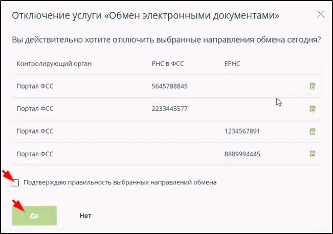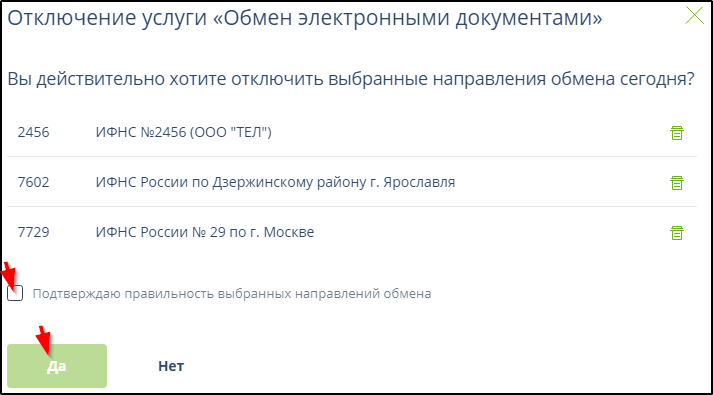 Для отключения можно отметить сразу несколько направлений обмена.