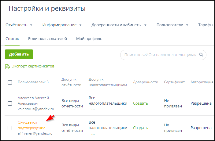 До момента получения подтверждения от пользователя его ФИО и СНИЛС не будут отображаться в окнах настройки, будет отображаться сообщение об ожидании подтверждения.