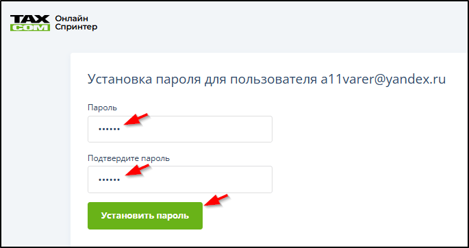 После нажатия ссылки "Установить пароль" откроется окно, в котором нужно дважды ввести пароль для входа в систему и нажать зелёную кнопку . Пример: