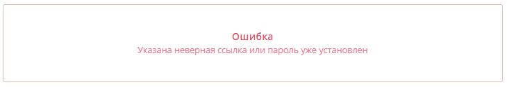 Установить пароль при помощи ссылки из письма "Установить пароль" можно только один раз. При попытке повторно воспользоваться ссылкой "Установить пароль" отобразится сообщение: