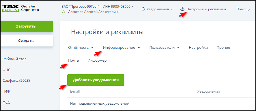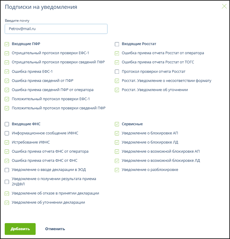 Ввести email для получения уведомлений. Этот email может отличаться от зарегистрированного в качестве логина.