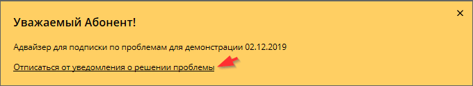 При нажатии кнопки "Отписаться от уведомления о решении проблемы" галочка в соответствующей позиции окна настройки уведомлений будет автоматически удалена.