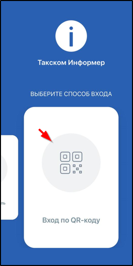 Открыть приложение Такском Информер, сдвинуть изображение влево и нажать кнопку "Вход по QR-коду":