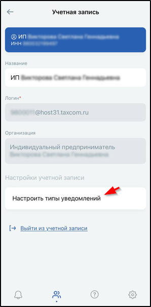 Для настройки нужно открыть данные учётной записи и нажать ссылку "Настроить типы уведомлений":