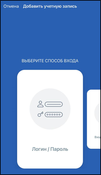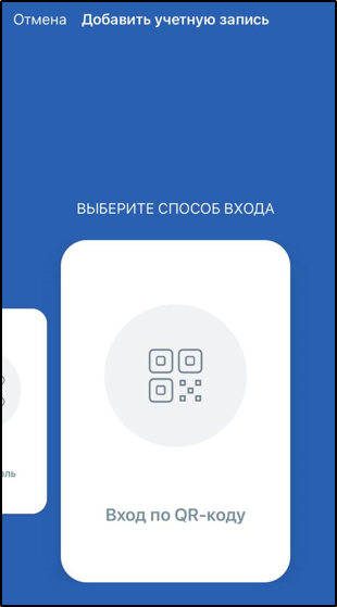 Далее нужно выбрать способ авторизации, как при первом входе в приложение (по логину/паролю или по QR-коду), и считать QR-код или ввести логин и пароль.