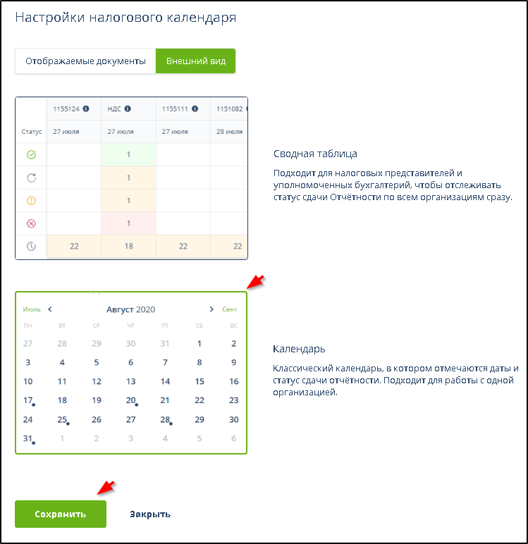 Для настройки формы представления календаря ("Сводная таблица" или "Календарь") нужно: