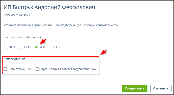 При необходимости поставить галочки в позициях "Есть сотрудники" и "Организация является государственной".