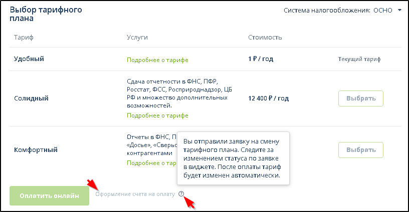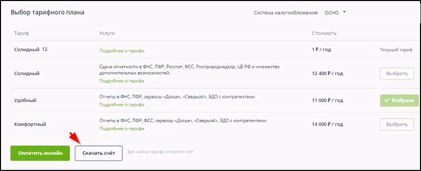 В графе "Стоимость" показана стоимость только базового комплекта услуг. Итоговая цена складывается из стоимости базового комплекта услуг и оплаты за ранее подключенные пользователем дополнительные услуги (например, за направление обмена с ФСС).