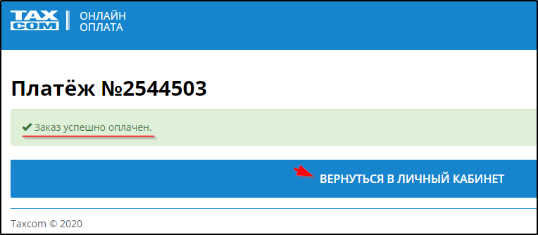 После этого отобразится сообщение "Заказ успешно оплачен", а на виджете "Информация по договору" появится сообщение "Ожидание смены тарифа". Пример: