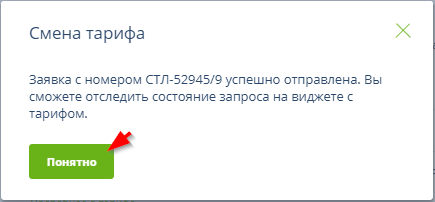 Отобразится окно сообщения об успешной отправке заявки, которое закрывается нажатием кнопки "Понятно". Пример: