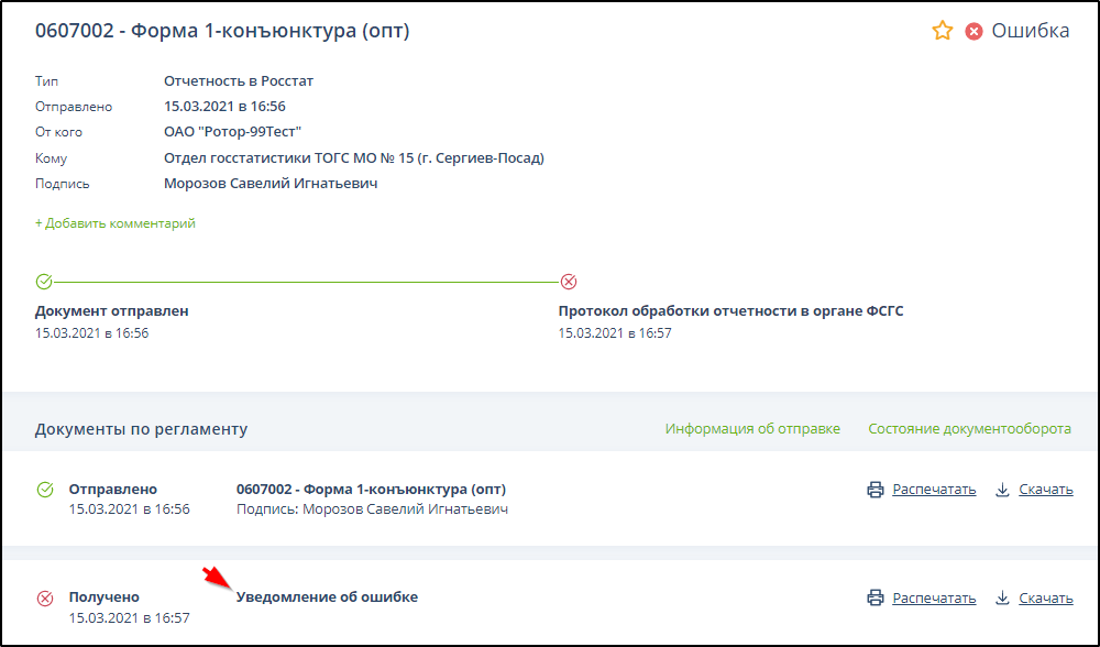 Если отчетность была отправлена, то можно нажать кнопку и перейти к подробной информации об ЭДО, щелкнув мышью на названии документа отчетности. Пример: