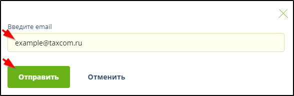 В случае выбора в этом меню пункта "Отправить ссылку на почту" нужно указать e-mail организации или физического лица, которому раскрываются сведения, и нажать кнопку Отправить . Пример: