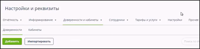 Ссылка "заполните информацию в настройках" позволяет открыть подраздел "Настройки и реквизиты" - "Доверенности и кабинеты" -"Доверенности" для ввода сведений доверенности: