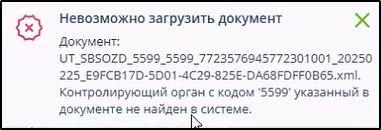 Если код налогового органа, указанного в импортируемом документе в качестве адресата, не существует, то импорт не происходит, отображается сообщение об этом. Пример такого сообщения: