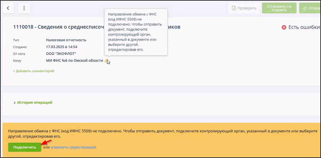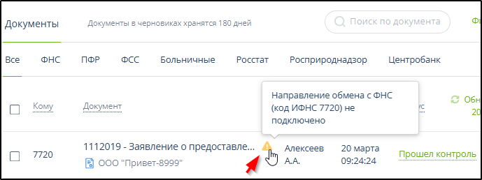 Если код налогового органа, указанного в импортируемом документе в качестве адресата, существует, но отсутствует среди подключенных направлений обмена (см. п.