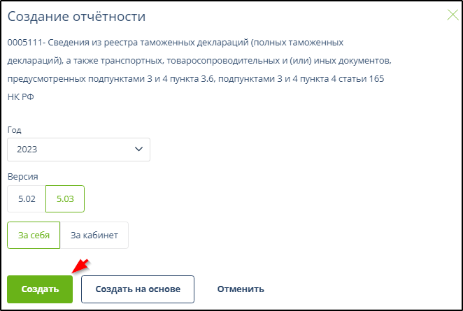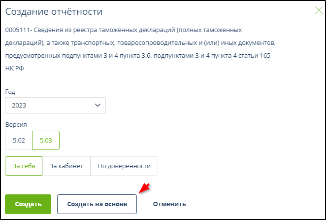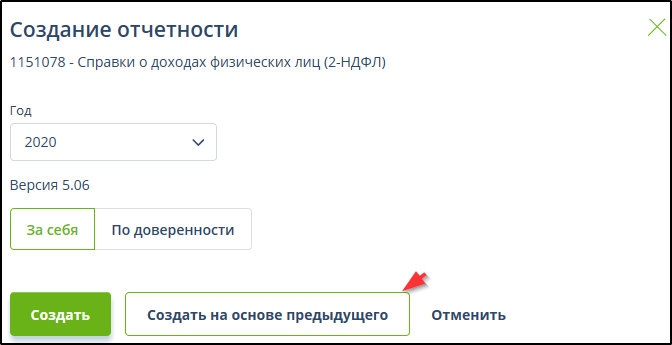 Если для определенной формы документа предусмотрена возможность создания нового документа с перенесением данных из некоторого отправленного или поступившего документа и размер необходимого для переноса данных документа не превышает 10 Мб, то после нажатия в главном меню кнопки "Создать", выбора формы документа, года и периода, появится кнопка "Создать на основе ..." или "Создать по ... ". Примеры: