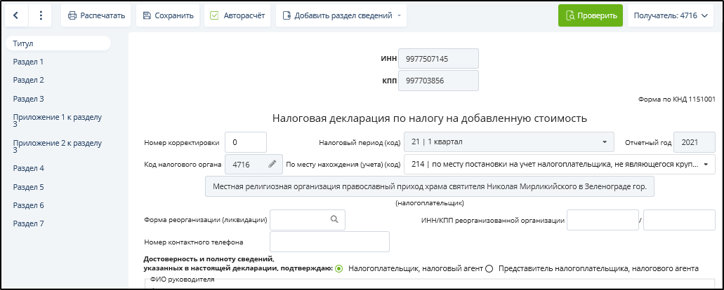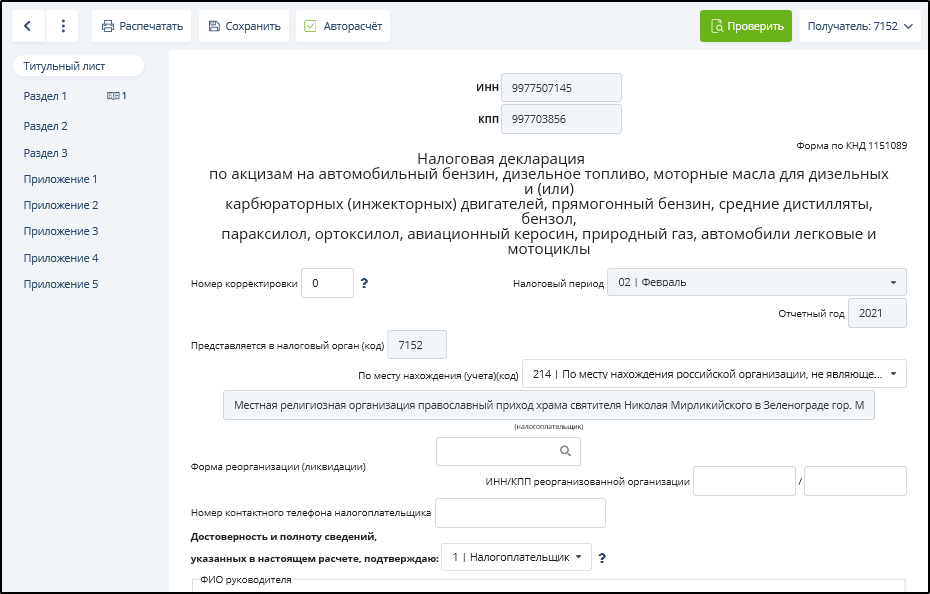 При сохранении открытого документа или при переходе к контролю будет осуществлена проверка заполнения обязательных полей (только для текущего раздела, листа, страницы), проверка правильности указания значений кодов и сверка значений реквизитов, указанных в данной форме, со значениями реквизитов в разделе "Настройки и реквизиты". В случае обнаружения ошибок появятся сообщения об этом.
