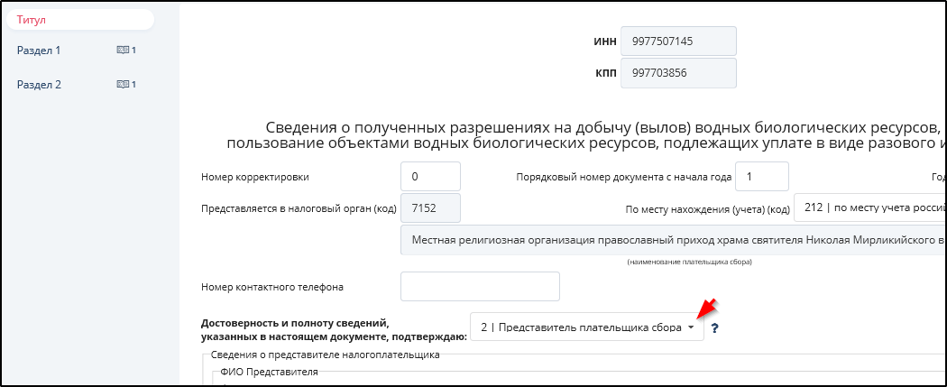 Код ИФНС и КПП при необходимости и наличии альтернатив можно выбрать из списка после нажатия кнопки
