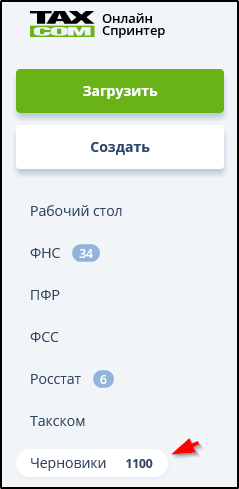 Общее количество документов, хранящихся в разделе "Черновики", отображается справа от названия раздела. Пример: