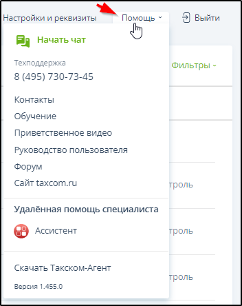 Кнопка "Помощь", расположенная справа вверху, открывает: