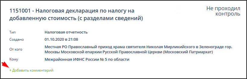 Нажать кнопку "+Добавить комментарий". Пример: