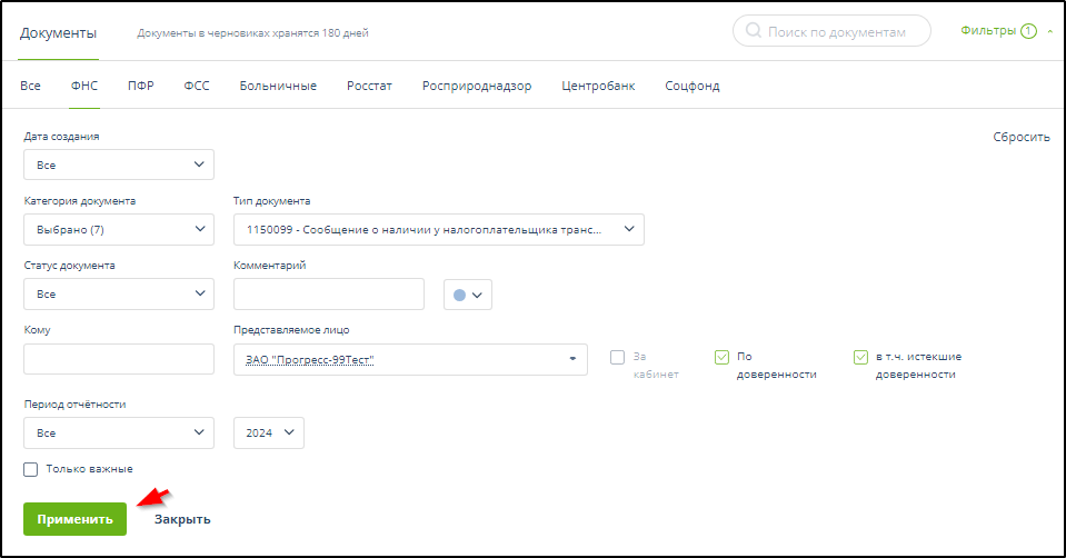 После выбора параметров фильтрации для их применения следует нажать кнопку Применить . Пример: