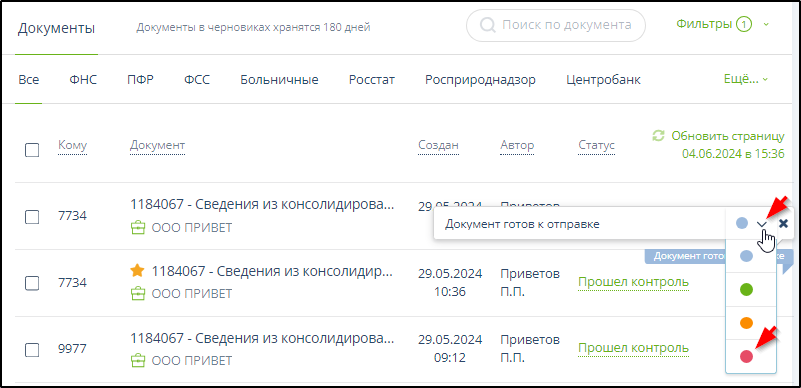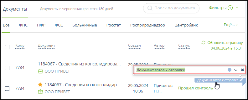8.1.2. Работа с неотправленными документами, поиск и фильтрация