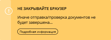 О наличии незавершенных процессов отправки или проверки документов напоминает предупреждение, которое появляется на короткое время (около 1 секунды) в нижней части окна: