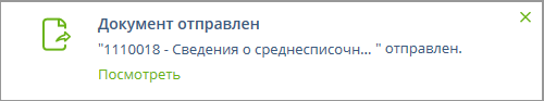 После успешного формирования ЭП и отправки документа в налоговый орган слева в нижней части экранной формы на короткое время появится сообщение об успешной отправке. Пример: