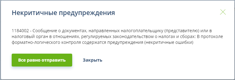 Если при попытке отправки в документе обнаруживаются некритичные ошибки, то можно отправить документ без устранения этих ошибок нажатием ссылки "Все равно отправить" во всплывающем окне. Пример: