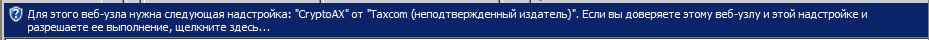 В этом случае следует щелкнуть мышью в верхней части окна на синем поле с надписью "Для этого веб-узла нужна следующая надстройка:…" и в следующем открывшемся окне выбрать вариант, указывающий, что вы доверяете надстройке CryptoAX при подключении ко всем веб-узлам.
