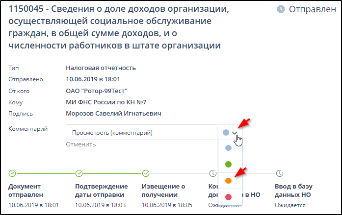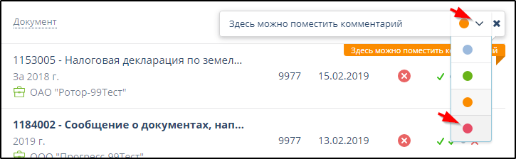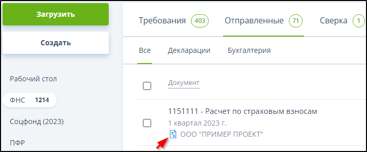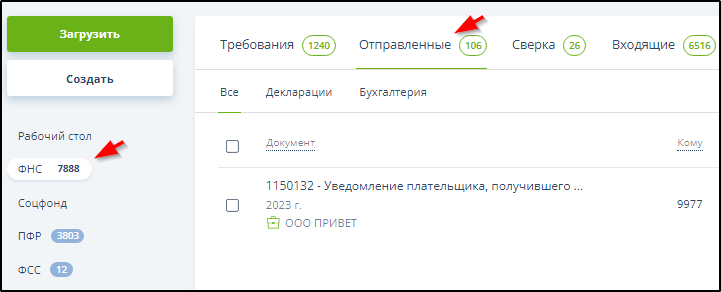 Документы, отправленные за присоединенный кабинет, автоматически отмечаются значком