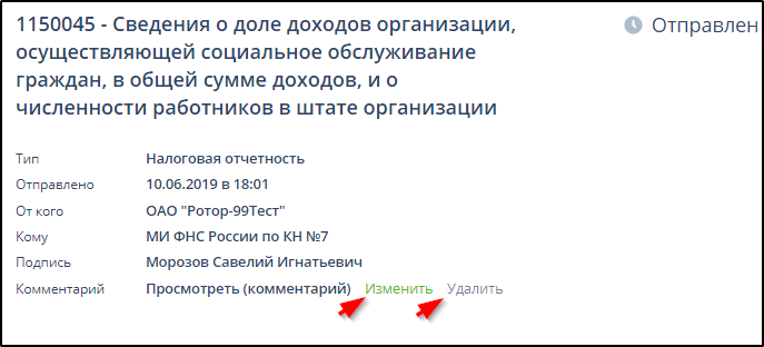 Комментарий можно изменить или удалить с использованием соответствующих кнопок. Пример: