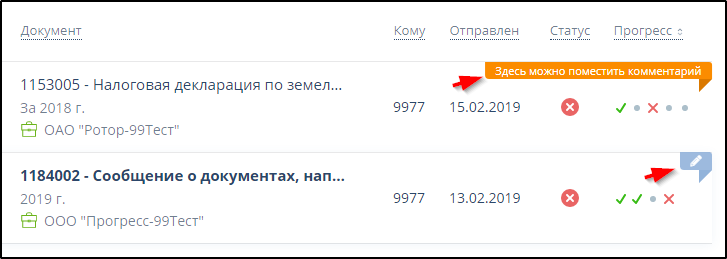 Щелкнуть левой кнопкой мыши на тексте комментария в правой части строки или на значке , который появляется при наведении курсора мыши на строку документооборота без комментария. Пример: