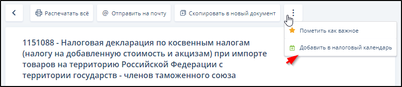 На странице ЭДО при желании можно добавить документ в список документов, заслуживающих отражения в виджете "Налоговый календарь" или удалить документ из этого списка, если он был туда ранее добавлен.