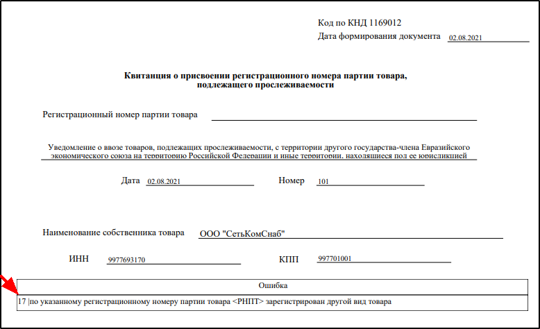 Для краткости далее в этом пункте Квитанцию о присвоении регистрационного номера партии товара, подлежащего прослеживаемости, будем называть Квитанцией о присвоении РНПТ.
