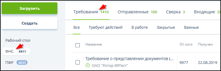 В разделе "Рабочий стол " на виджете "Критичные уведомления" отображаются последние поступившие требования и письма из налоговых органов.