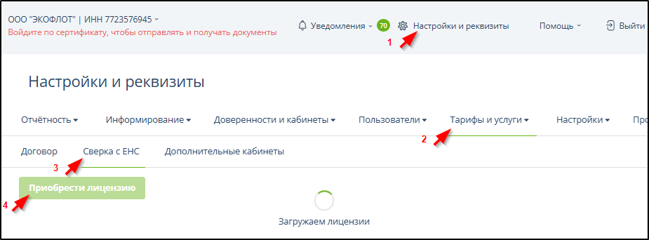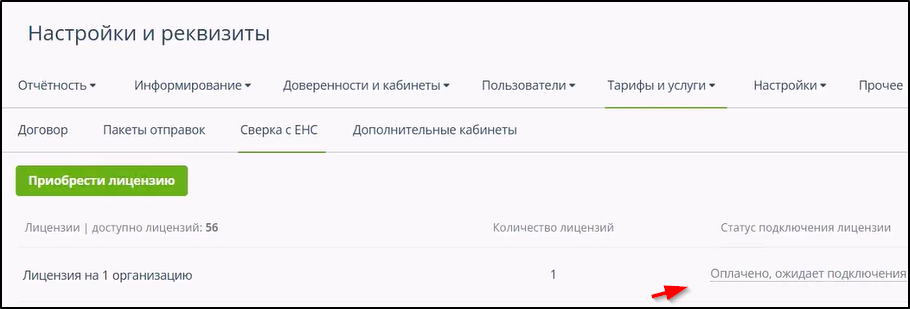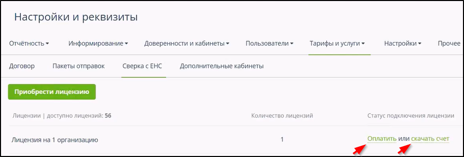 Для получения счетов и оплаты лицензии на услугу сверки с ЕНС нужно: