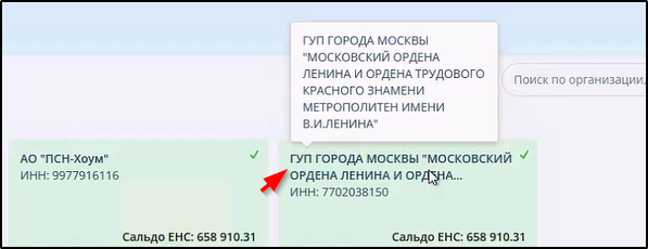 Чтобы увидеть на блоке длинное наименование организации полностью, нужно навести на него курсор. Пример: